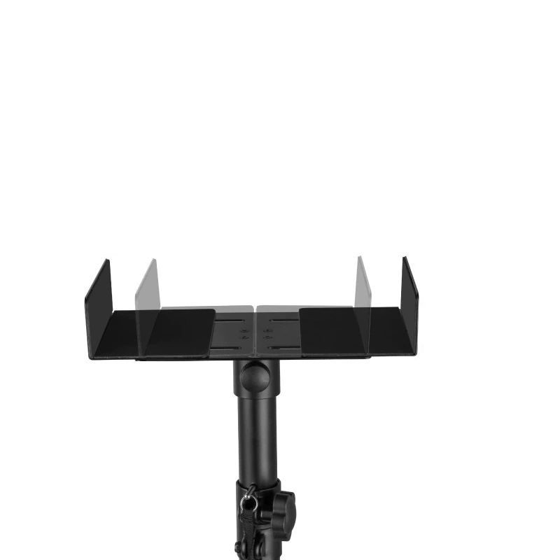 Com sua estrutura resistente, permite que a bandeja seja fixada em tripé de caixa de forma fácil e segura. Com sua superfície plana, oferece espaço para acomodar diferentes tamanhos de caixas. É um item versátil e fácil de usar.