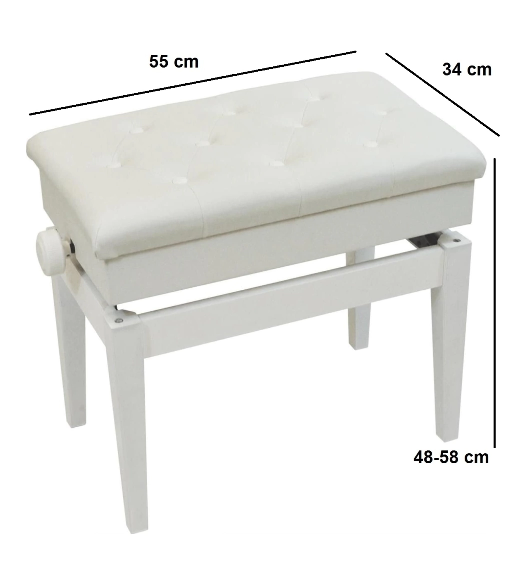 Altura do banco de piano é 100% ajustável, de modo que cada membro da sua família pode usá-lo facilmente. Tudo o que você precisa fazer é girar os botões simples e ajustar a altura de 48 cm para 58 cm. Além disso, o produto conta com um espaço de armazenamento conveniente e escondido, sob o assento, que pode guardar suas partituras ou livros!