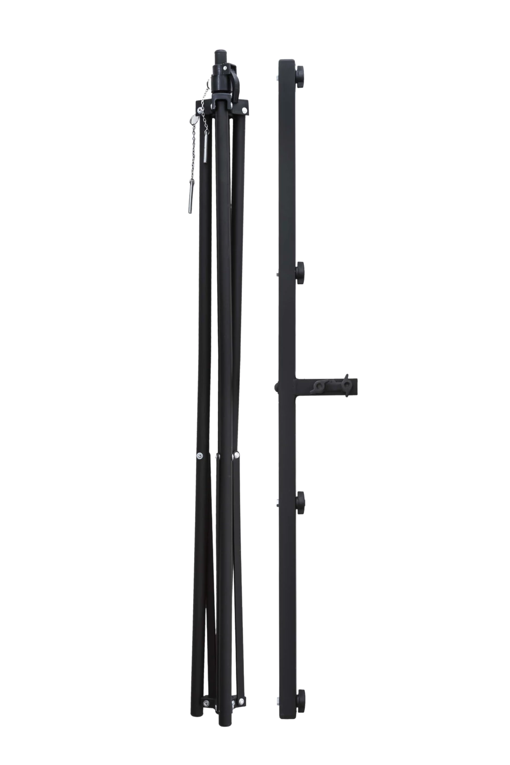 - Possui diversos níveis de altura por furos,travados através de pino de aço.