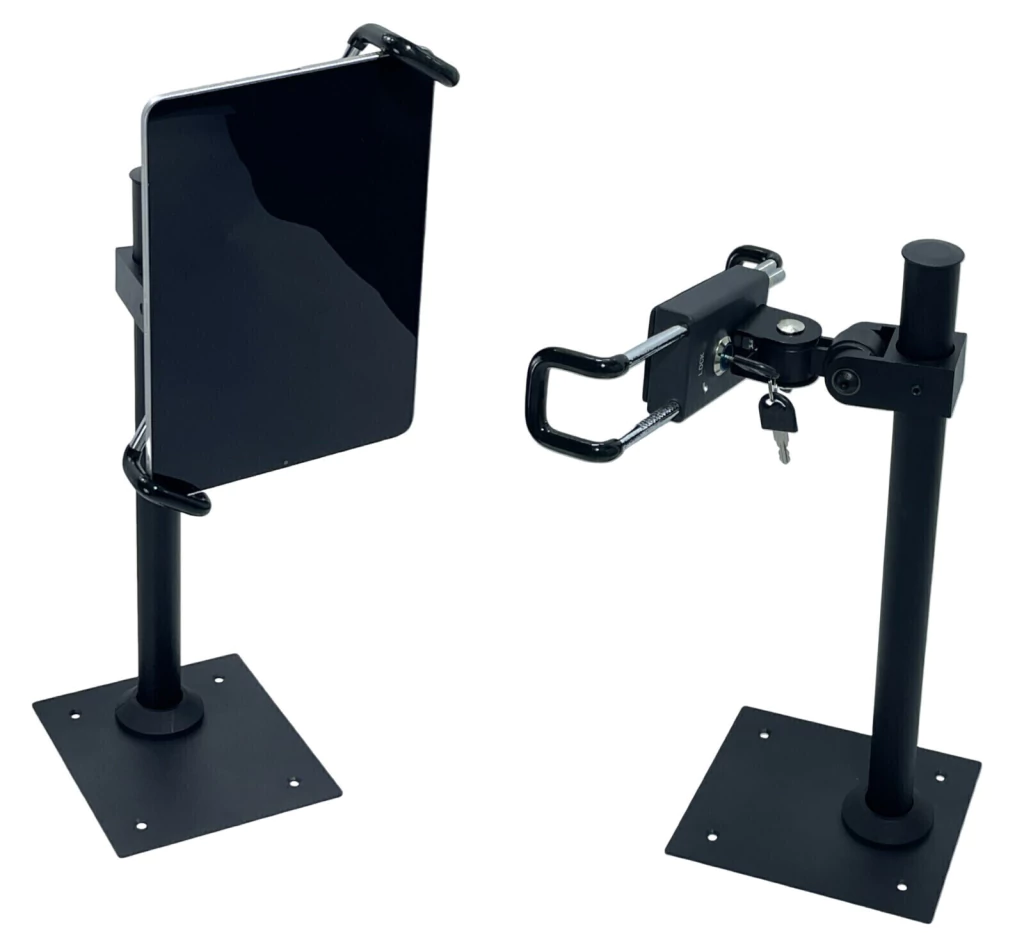Suporte para fixar tablet em superfície (mesa, balcão, guichê, etc.) - com trava antifurto