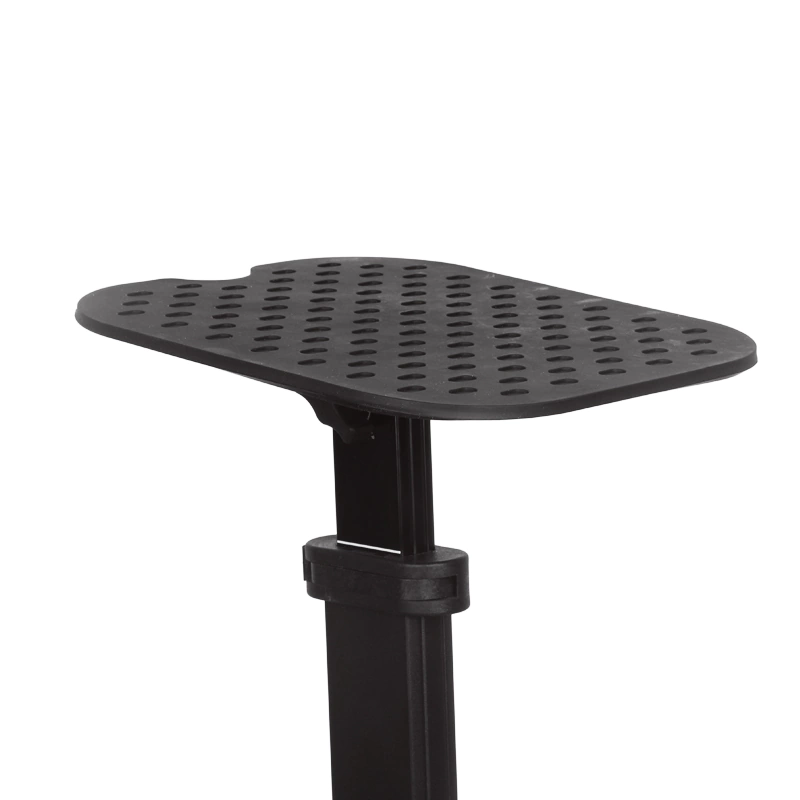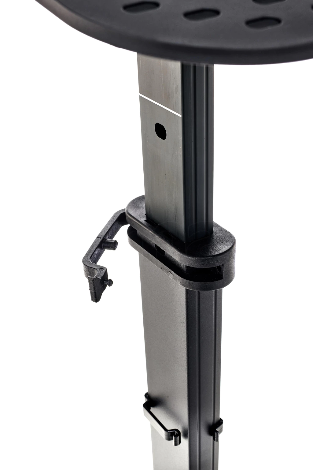 - Bandeja superior em aço, coberta com uma placa de borracha que proporciona segurança para o monitor, impedindo o deslizamento, ao mesmo tempo que ajuda na absorção das vibrações indesejadas.