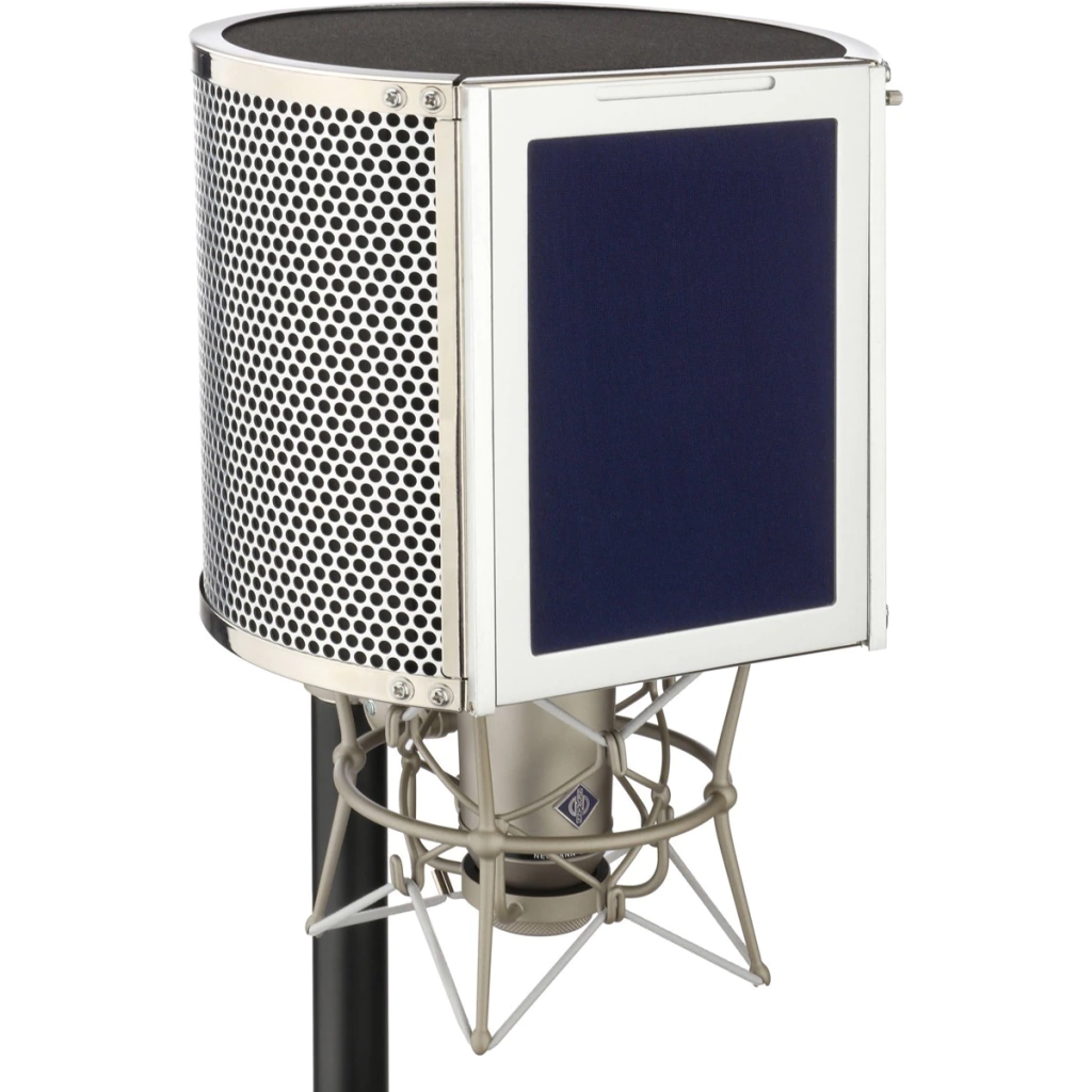 Construído com espuma acústica de célula aberta de alta densidade que envolve o microfone enquanto isola e absorve o som. Um escudo de alumínio perfurado evita reflexos de retorno enquanto bloqueia o ruído ambiente de chegar ao microfone. O design da câmara profunda concentra a voz em um microfone isolado e captura todo o seu espectro vocal sem a coloração do som. O filtro pop de náilon removível de camada dupla é integrado ao design para evitar estalos vocais e plosivos.