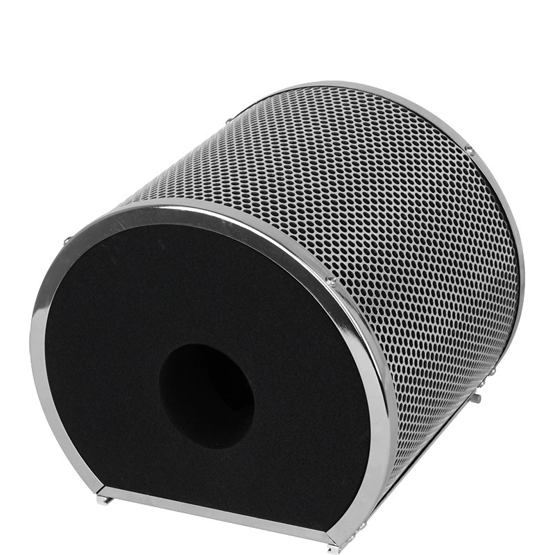 - O problema com salas não tratadas é que o som pode saltar das paredes, teto e chão. O invólucro de alumínio perfurado evita que essas reflexões de ressalto alcancem o microfone e melhora a qualidade de suas faixas vocais.